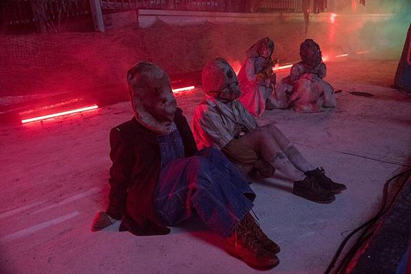 片中的樂園則要求遊客入園前簽署切結書,讓鬼怪可以「善盡職責」把你嚇哭,而充滿機關的陰森迷宮中,每一個看似道具的鬼人偶,都有可能會突然朝你衝過來。恐怖的氛圍和逼真的血漿,讓遊客們沉浸在越可怕越好玩的心理狀態中,而當真正的殺人魔步步逼近時,卻無法察覺致命危險就在眼前。